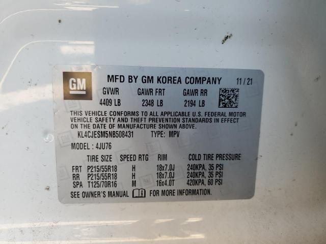 BUICK ENCORE 2022 PRE WHITE 1.4L 4 VIN: KL4CJESM5NB508431