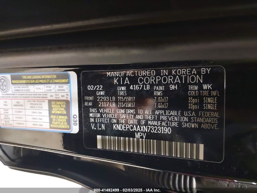 KIA SELTOS 2022 LX Black 2.0L I-4 DOHC, VVT, 146HP VIN: KNDEPCAAXN7323190