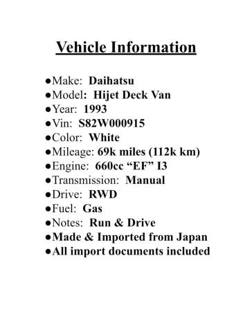 DAIHATSU HIJET 1993 WHITE VIN: S82W000915