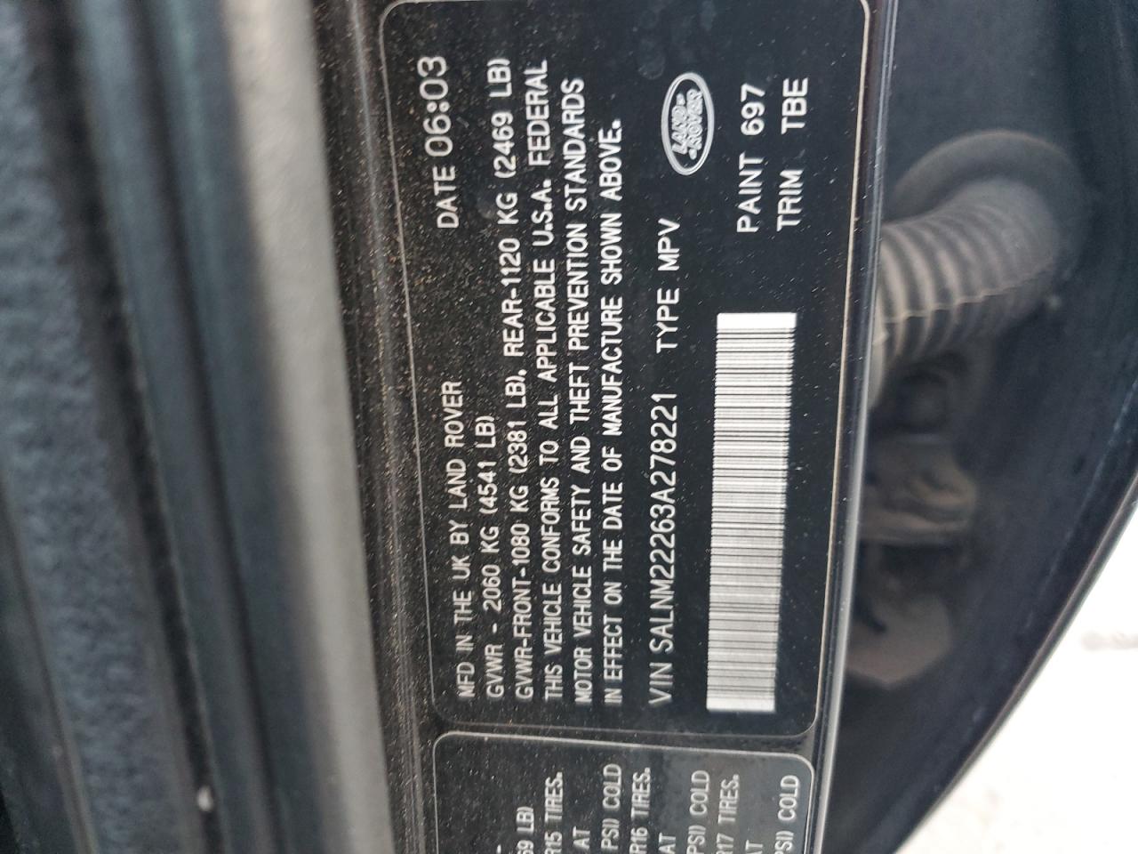 LAND ROVER FREELANDER 2003 S BLACK 2.5L 6 VIN: SALNM22263A278221