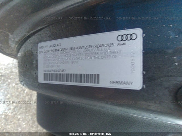 AUDI S5 COUPE 2019 S5 QUATTRO PRESTIGE 3.0L TFSI 6 Cylinder -inc VIN: WAUR4AF50KA043882