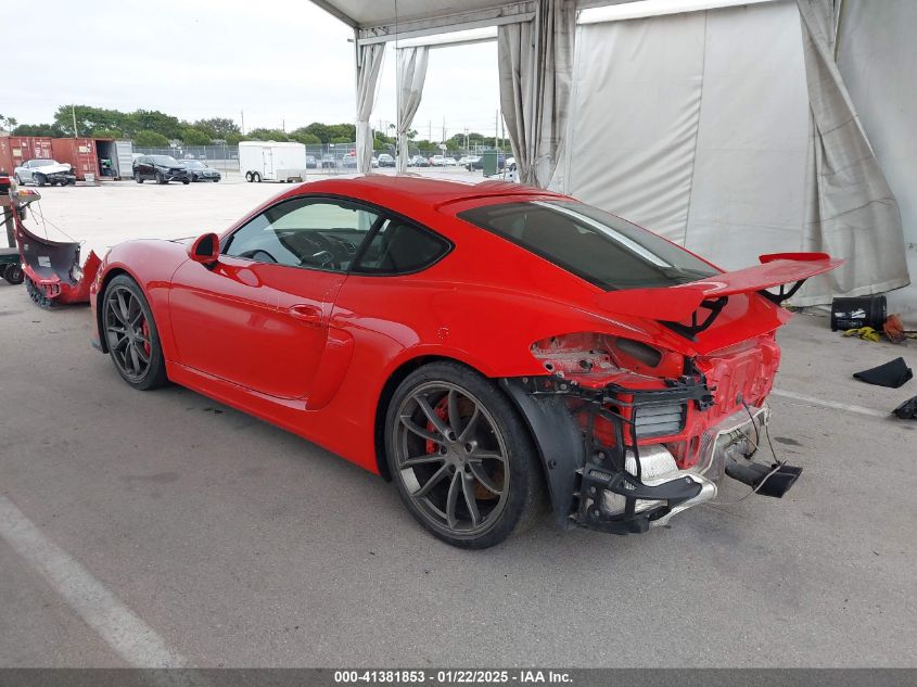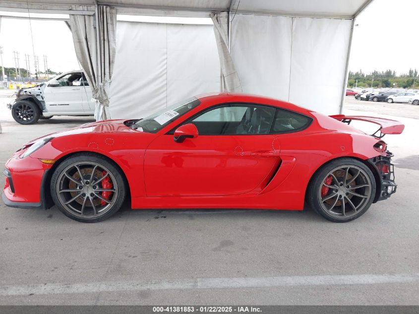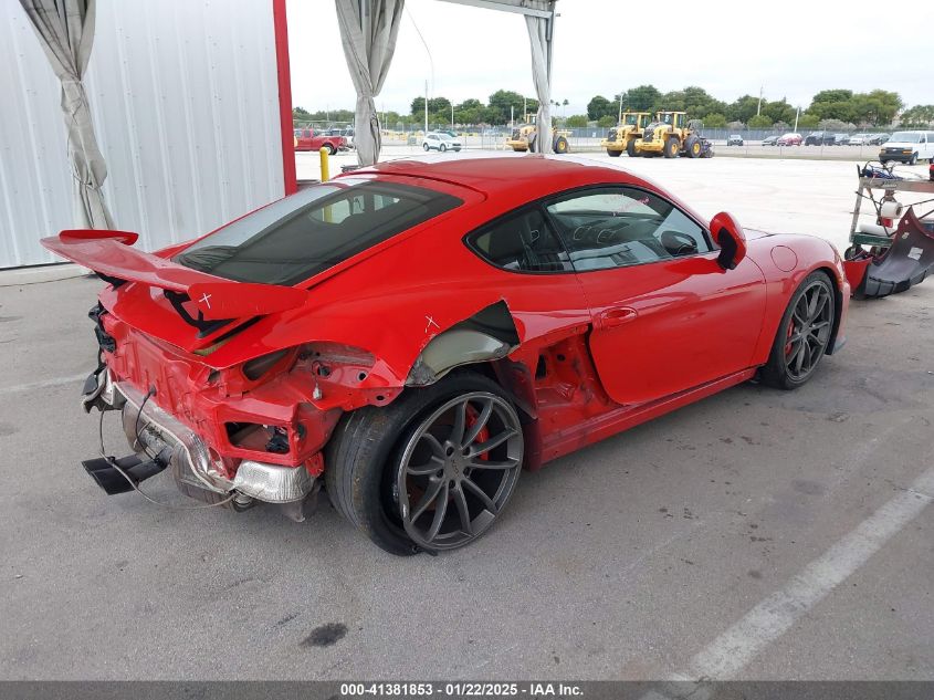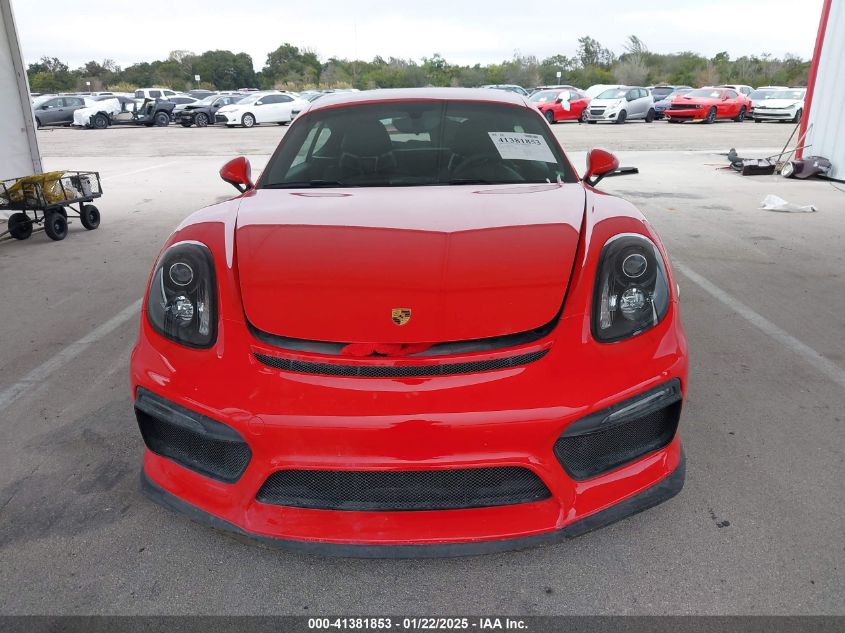 PORSCHE CAYMAN 2016 GT4 Red 3.8L H-6 DI, DOHC, VVT, 385HP VIN: WP0AC2A89GK191511