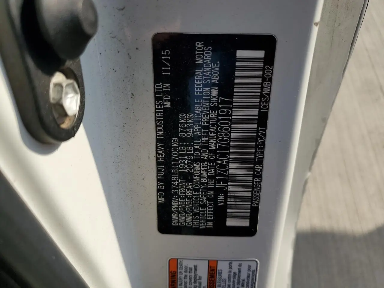 SUBARU BRZ 2016 2.0 LI WHITE 2.0L 4 VIN: JF1ZCAC17G8601917