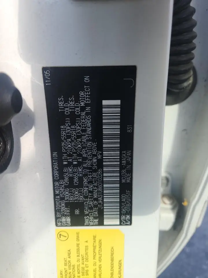 LEXUS RX330 2006 RX 330 WHITE 3.3L 6 VIN: JTJHA31U860103286