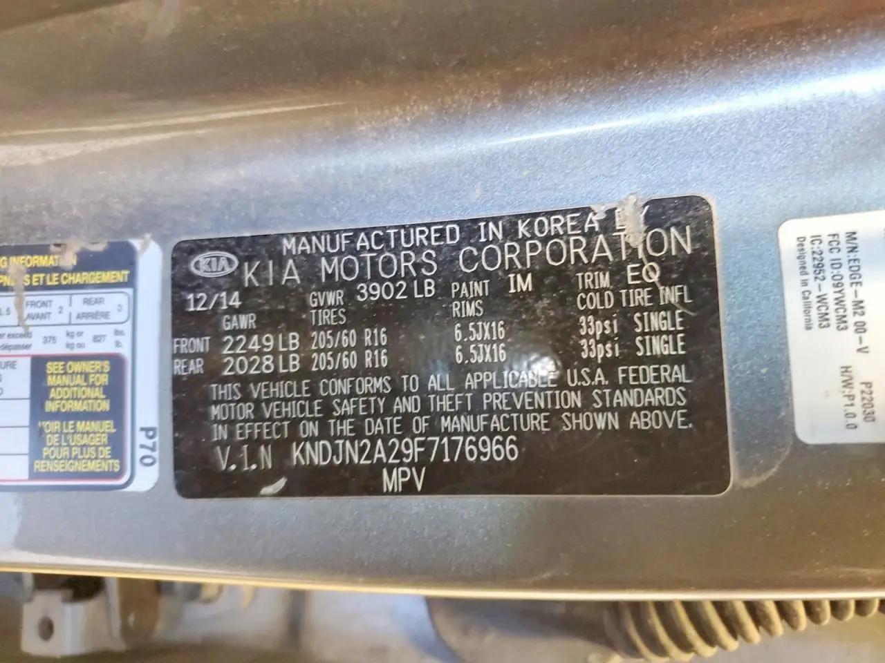 KIA SOUL 2015 GL(MIDDLE-LOW GRADE) GRAY 1.6L 4 VIN: KNDJN2A29F7176966