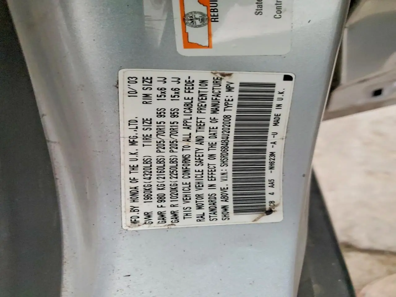 HONDA CRV 2004 CR-V LX SILVER 2.4L 4 VIN: SHSRD68484U202008