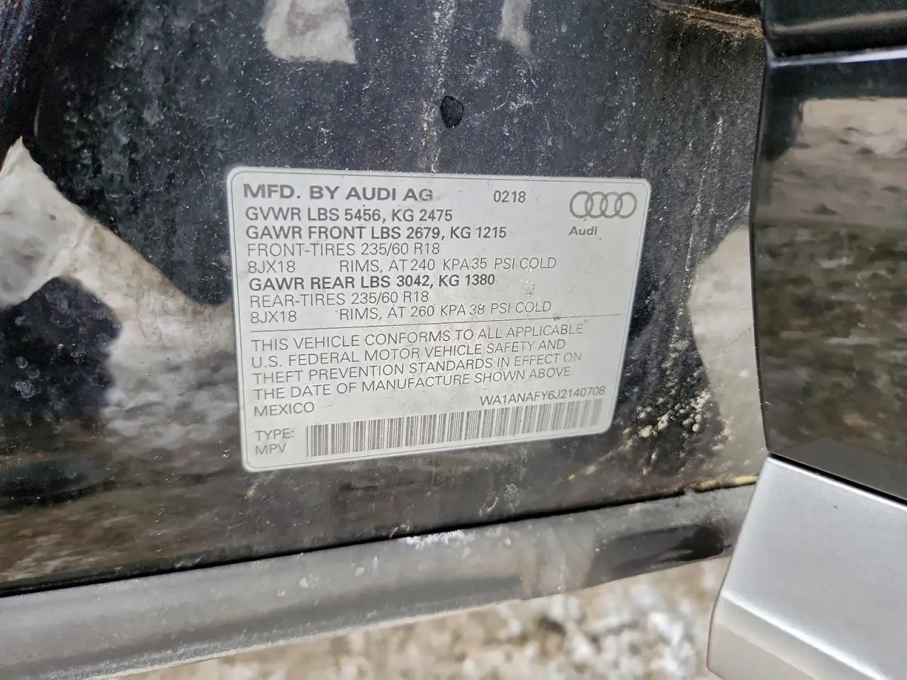AUDI Q5 2018 PREMIUM BLACK 2.0L 4 VIN: WA1ANAFY6J2140708