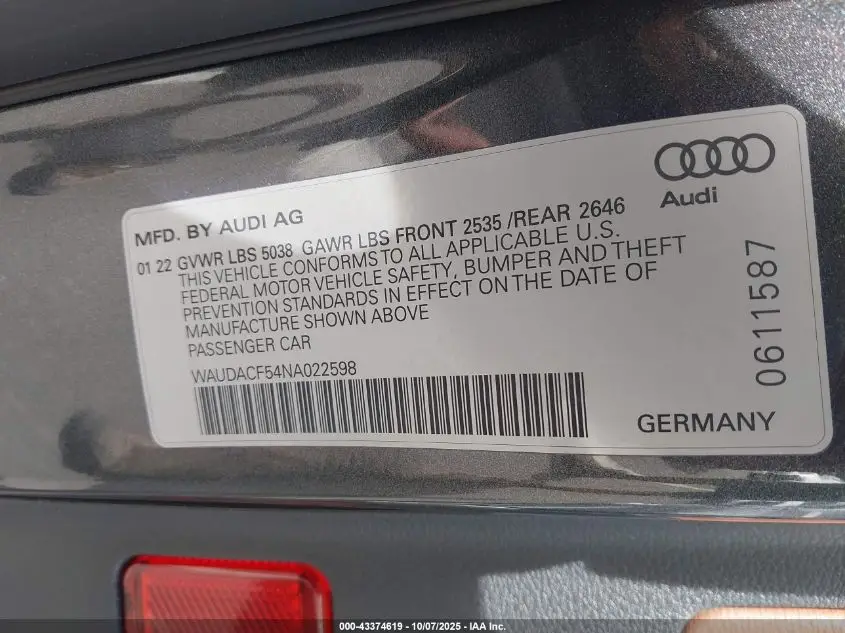 WAUDACF54NA022598 VIN decoding