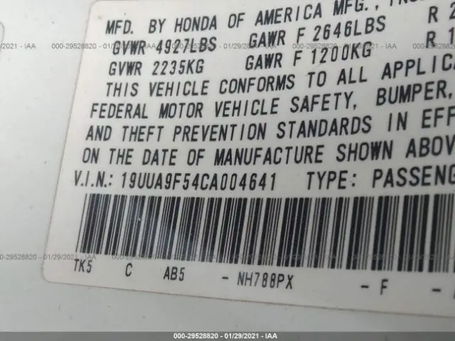 ACURA TL 2012 SH-AWD TECH 3.7L SOHC PGM-FI 24-valve VIN: 19UUA9F54CA004641