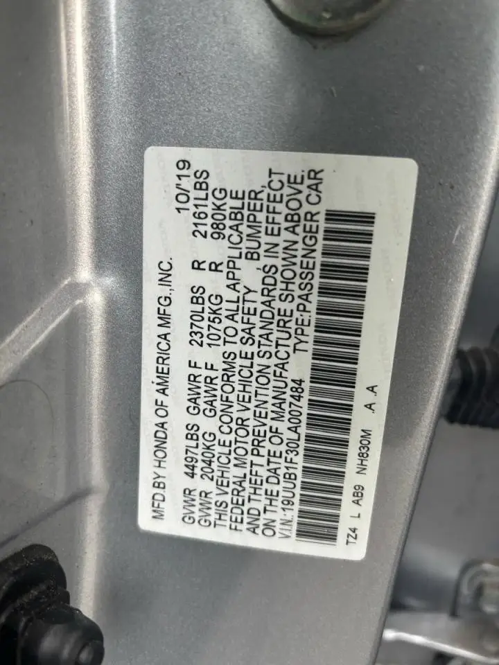 ACURA TLX 2020 GRAY 2.4L 4 VIN: 19UUB1F30LA007484