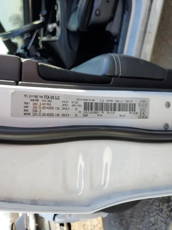 JEEP GRAND CHER 2016 SRT WHITE 6.4L 8 VIN: 1C4RJFDJXGC486674
