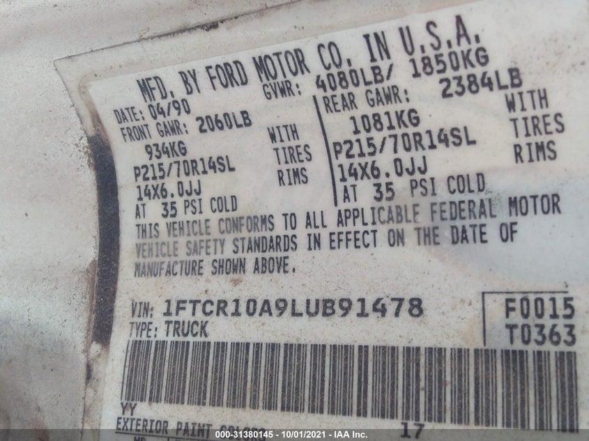 FORD RANGER 1990 White 2.3L I4 FI OHV F VIN: 1FTCR10A9LUB91478