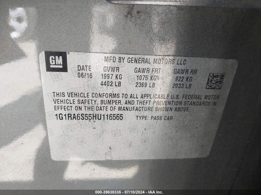 CHEVROLET VOLT 2017 LT Gray 1.5L I-4 DI, DOHC, VVT, 101HP VIN: 1G1RA6S55HU116565