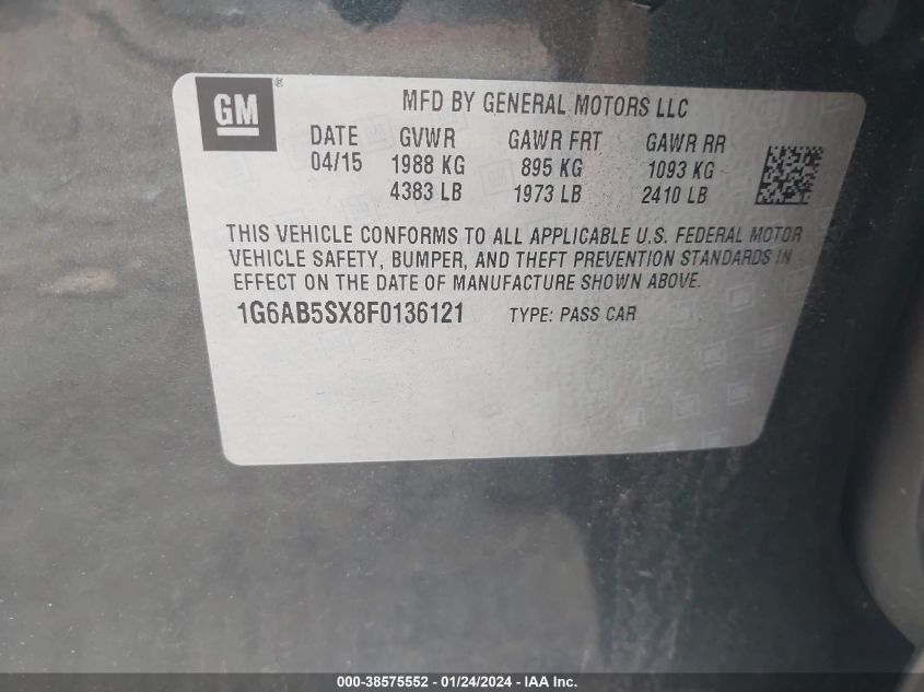 CADILLAC ATS 2015 LUXURY Gray 2.0L I-4 DI, DOHC, VVT, turbo, 272HP VIN: 1G6AB5SX8F0136121