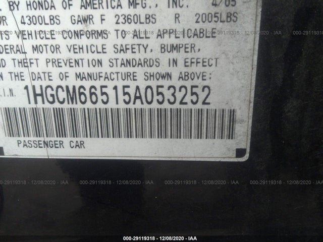 HONDA ACCORD SDN 2005 EX-V6 3.0L SOHC MPFI 24-valve VTEC VIN: 1HGCM66515A053252