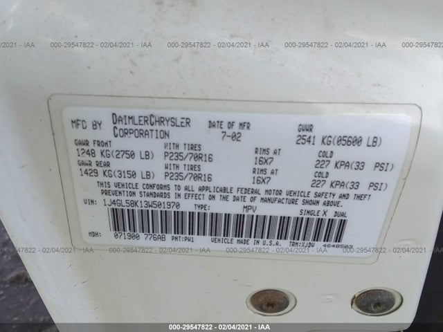 JEEP LIBERTY 2003 LIMITED 3.7L DOHC V6 Power Tech VIN: 1J4GL58K13W501970