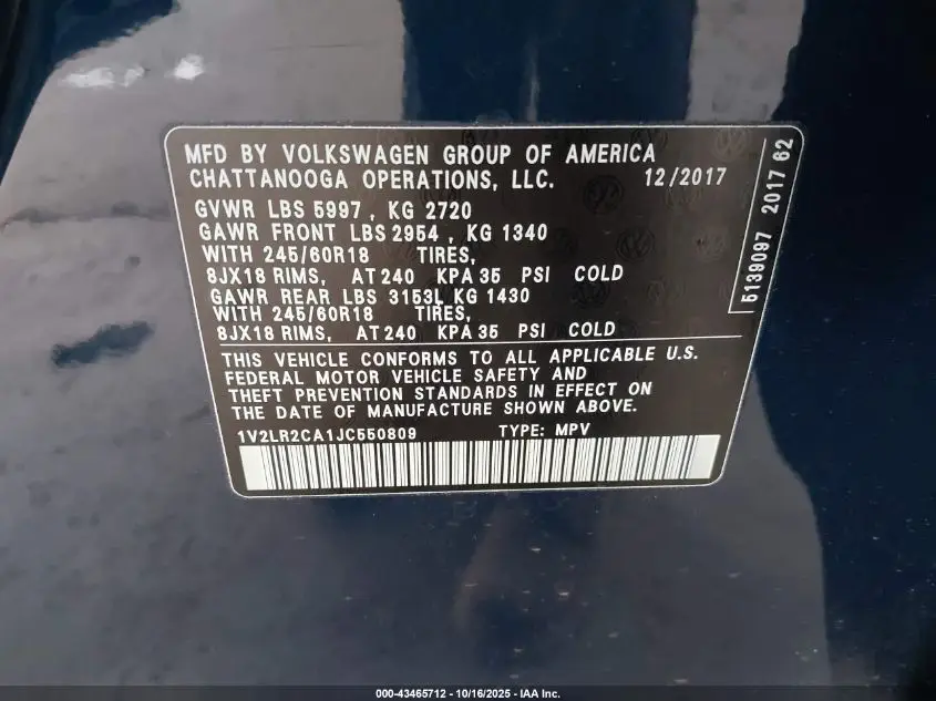 VOLKSWAGEN ATLAS 2018 3.6L V6 SE/3.6L V6 SE W/TECHNOLOGY Blue 3.6L V-6 DI, DOHC, VVT, 276HP VIN: 1V2LR2CA1JC550809