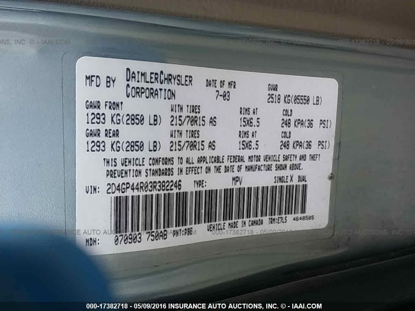 DODGE GRAND CARAVAN SPORT 2003