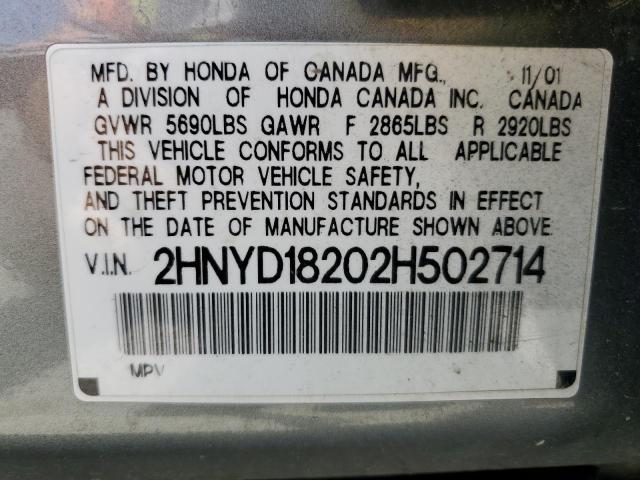 ACURA MDX 2002 STD GRAY 3.5L 6 VIN: 2HNYD18202H502714