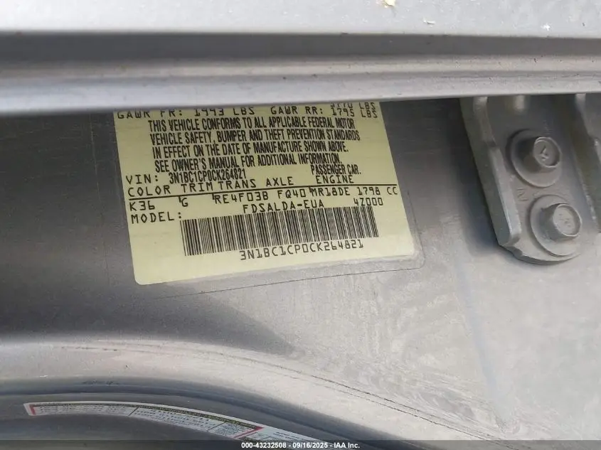 NISSAN VERSA 2012 1.8 S Silver 1.8L I-4 DOHC, VVT, 122HP VIN: 3N1BC1CP0CK264821