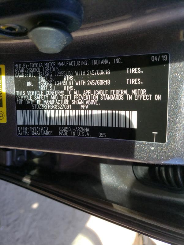 TOYOTA HIGHLANDER LE/LE PLUS 2019