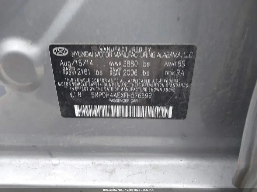 HYUNDAI ELANTRA 2015 SE Silver 1.8L I-4 DOHC, VVT, 145HP VIN: 5NPDH4AEXFH576699