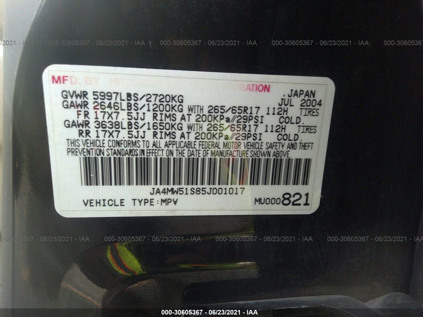 MITSUBISHI MONTERO 2005 LTD Black 3.8L SOHC MPFI 24-VALVE V6 VIN: JA4MW51S85J001017