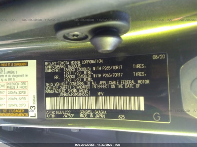 TOYOTA 4 RUNNER 2021 TRD OFFROAD PREM VIN: JTERU5JR7M5845521