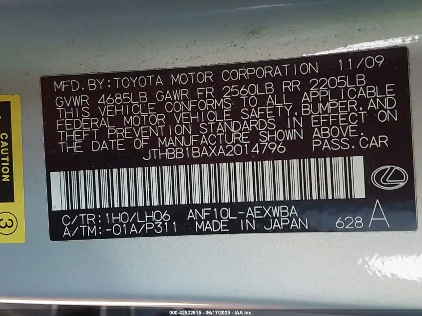LEXUS HS ANF10L 2010