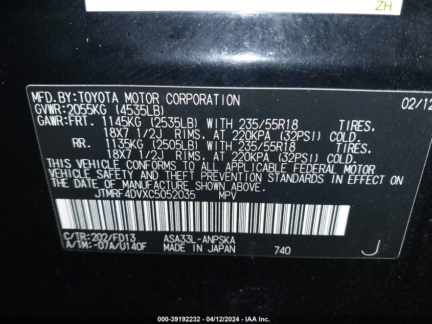 TOYOTA RAV4 2012 SPORT Black 2.5L I-4 DOHC, VVT, 179HP VIN: JTMRF4DVXC5052035