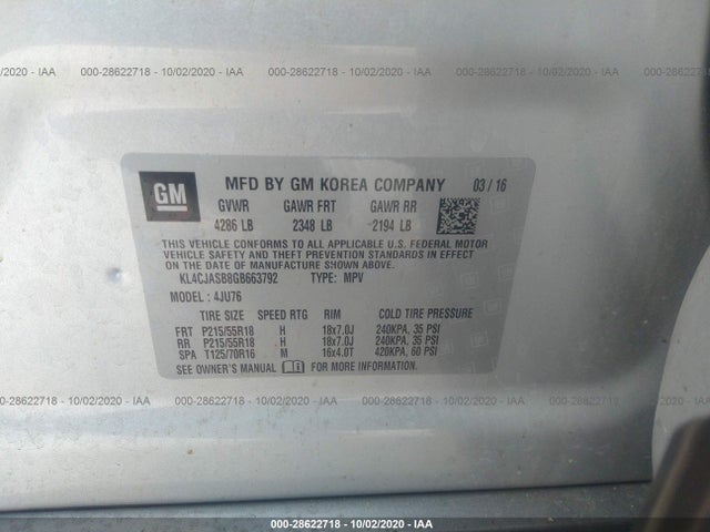 BUICK ENCORE 2016 ECOTEC Turbo 1.4L Variable VIN: KL4CJASB8GB663792