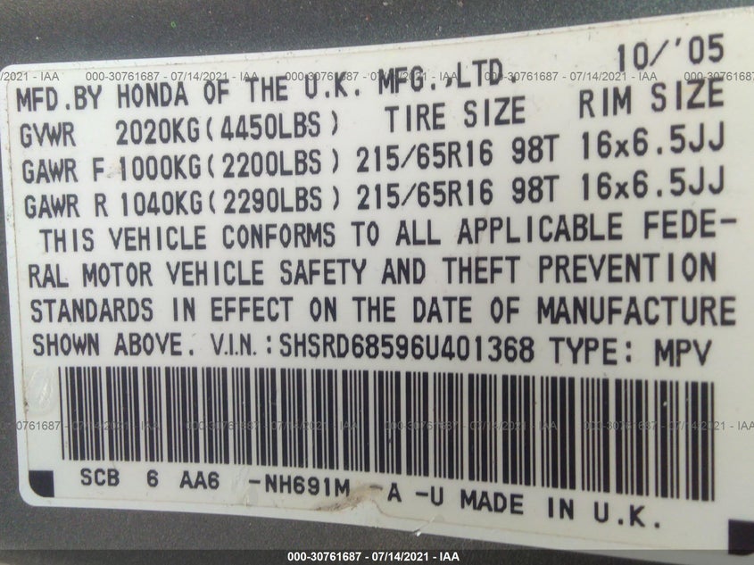 HONDA CR-V 2006 LX Gray 2.4L DOHC MPFI 16-VALVE VIN: SHSRD68596U401368
