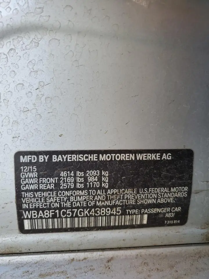 BMW 3 SERIES 2016 328 D XDRI SILVER 2.0L 4 VIN: WBA8F1C57GK438945