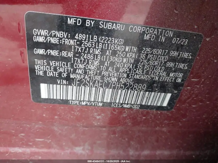 SUBARU FORESTER 2023 PREMIUM Red 2.5L H-4 DI, DOHC, VVT, 182HP VIN: JF2SKAEC7PH522889