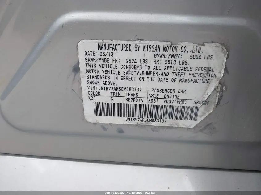 INFINITI Q50 2014 PREMIUM 3.7L V-6 DOHC, VVT, 328HP VIN: JN1BV7AR5EM683137