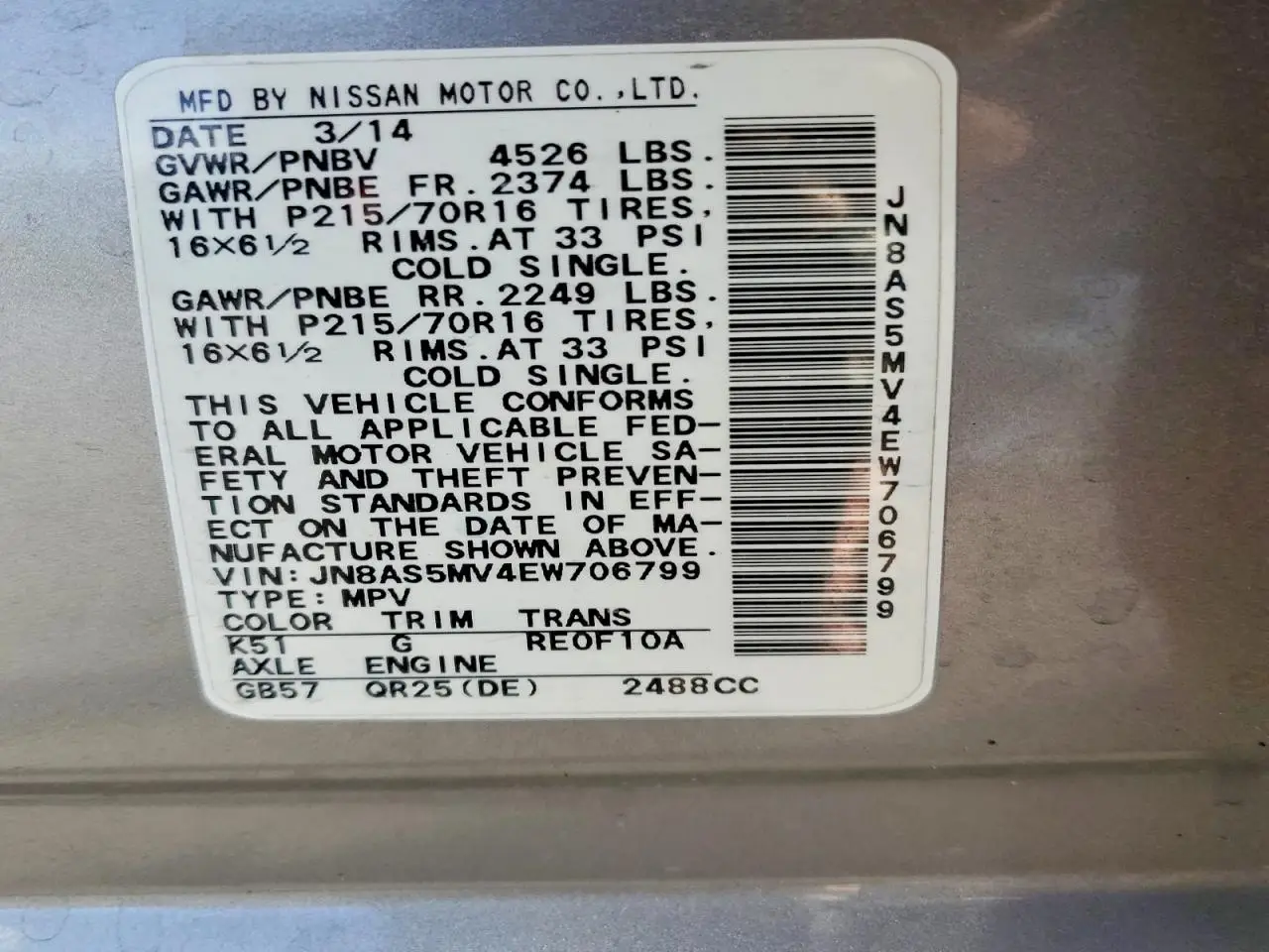 NISSAN ROGUE 2014 SELE SILVER 2.5L 4 VIN: JN8AS5MV4EW706799
