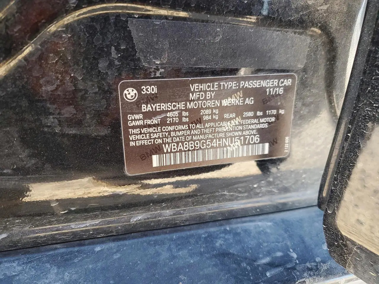 BMW 3 SERIES 2017 330 BLACK 2.0L 4 VIN: WBA8B9G54HNU51706