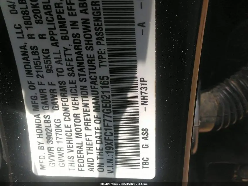 19XFC1F77GE021165
