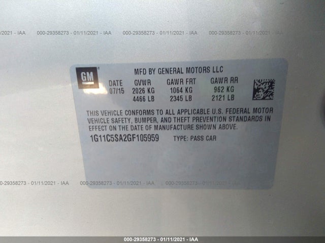 CHEVROLET MALIBU LIMITED 2016 LIMITED 2.5L DOHC 4-cylinder SIDI VIN: 1G11C5SA2GF105959