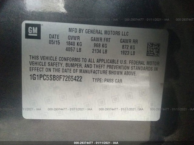 CHEVROLET CRUZE 2015 1LT (AUTOMATIC) ECOTEC Turbo 1.4L Variable VIN: 1G1PC5SB8F7265422