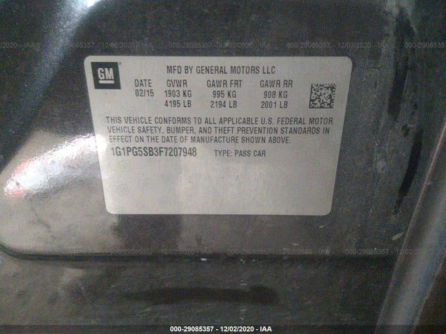 CHEVROLET CRUZE 2015 LTZ (AUTOMATIC) ECOTEC Turbo 1.4L Variable VIN: 1G1PG5SB3F7207948