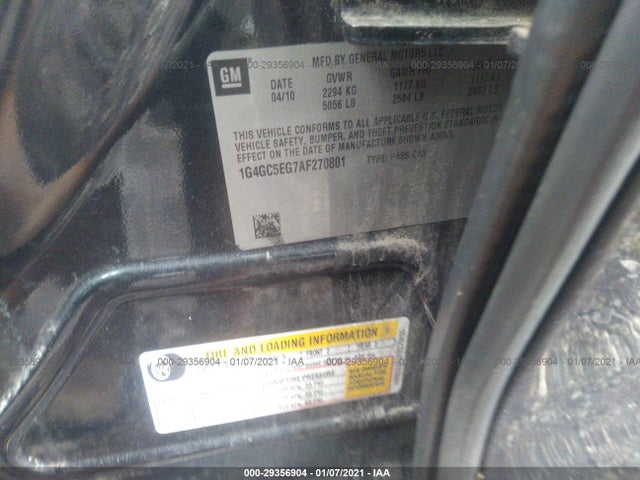 BUICK LACROSSE 2010 CXL 3.0L DOHC VIN: 1G4GC5EG7AF270801