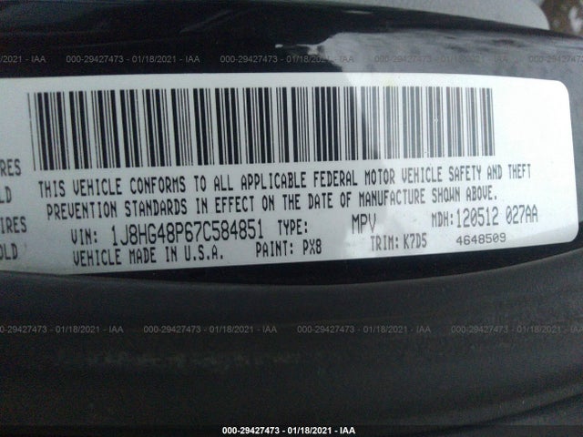 JEEP COMMANDER 2007 BASE 4.7L V8 FI F VIN: 1J8HG48P67C584851
