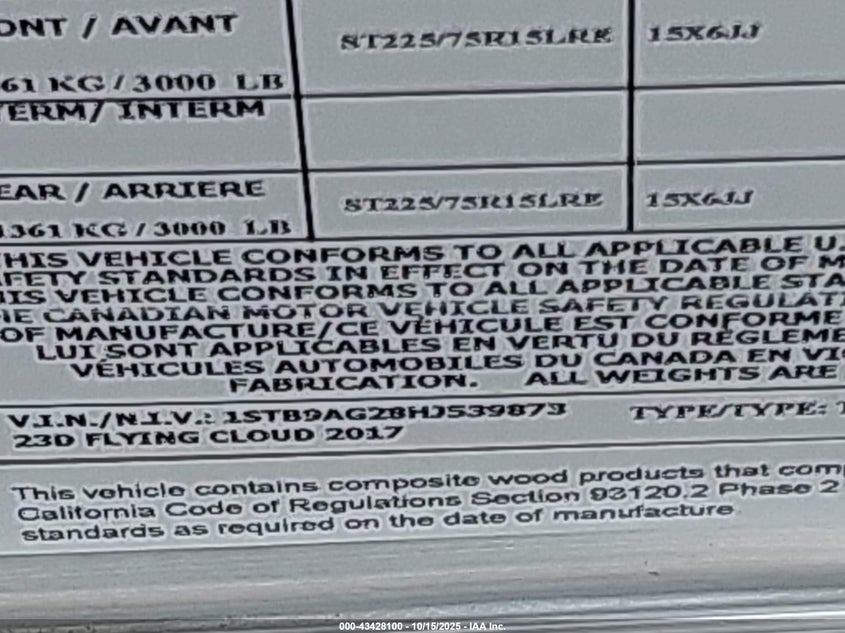 AIRSTREAM OTHER 2017 Silver VIN: 1STB9AG28HJ539873