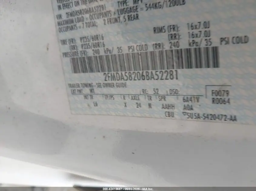 42415687 IAAI Not sold 25/08/2025 275$