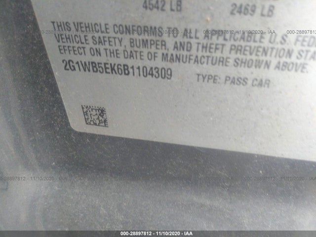 CHEVROLET IMPALA 2011 LT (1LT) 3.5L V6 SFI E85 includes E85 VIN: 2G1WB5EK6B1104309