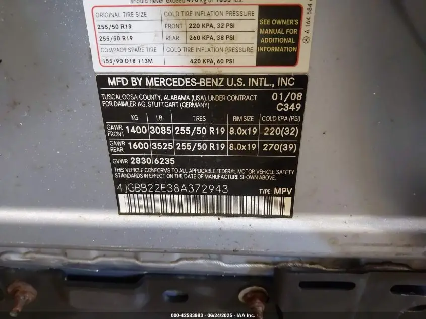 MERCEDES-BENZ ML 320 CDI CDI 4MATIC 2008