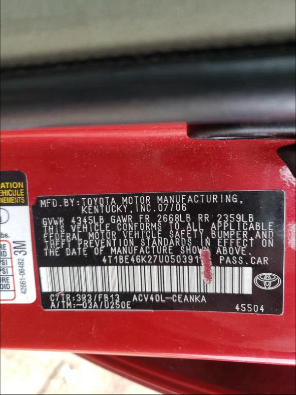 4T1BE46K27U050391