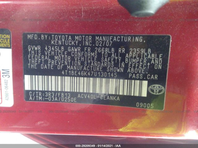 4T1BE46K47U130145