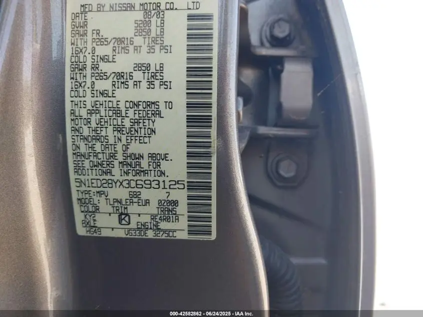 NISSAN XTERRA WAGON BODY STYLE 2003